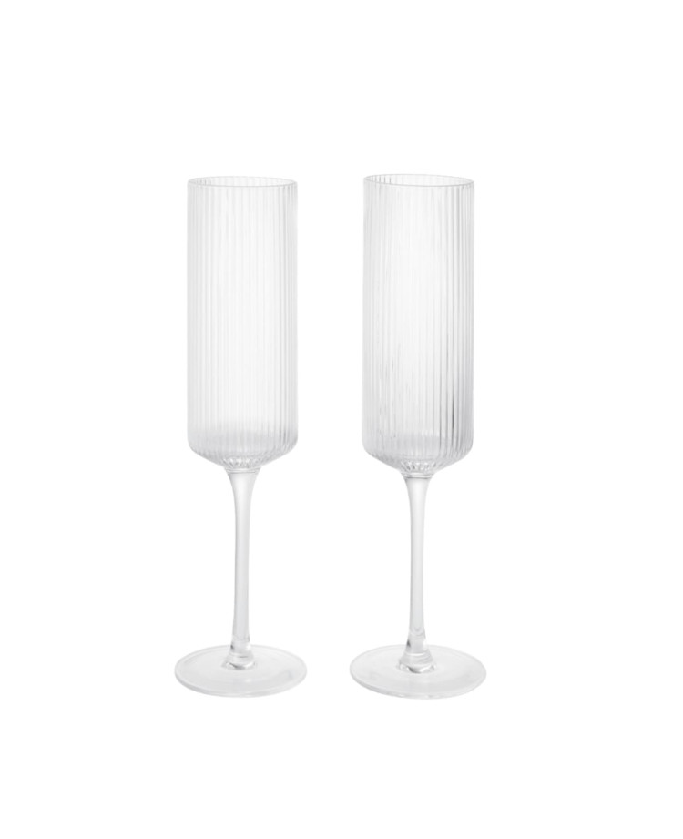 Élégantes et modernes, les flûtes à champagne Ripple Clear de Ferm Living subliment chaque célébration. Soufflées à la bouche, leur design ondulé reflète la lumière et met en valeur les bulles de votre champagne.
