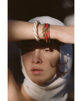Inspiré par les années 60 et des icônes de beauté telle que Diana Ross, ce bracelet est composé de résine recouvert d'un fil d'or jaune 750/1000.