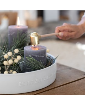 Fabriqué en bois de hêtre et en métal doré, ce bel accessoire permet d'éviter les éclaboussures de cire et de limiter la fumée dégagée lorsque l'on souffle sur la flamme.