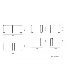 L 273 cm - H 60 cm - P 115.5 cm - Assise : H 37 cm