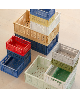 Le HAY Colour Crate apporte une touche de couleur à votre organisation quotidienne. Fabriquée à partir de plastique 100 % recyclé après consommation, cette boîte de rangement au design perforé distinctif est disponible dans une variété de couleurs et de tailles.
