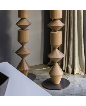 L'assemblage ingénieux d'éléments géométriques simples donne vie à un luminaire sculptural, tel un totem moderne qui attirera tous les regards.